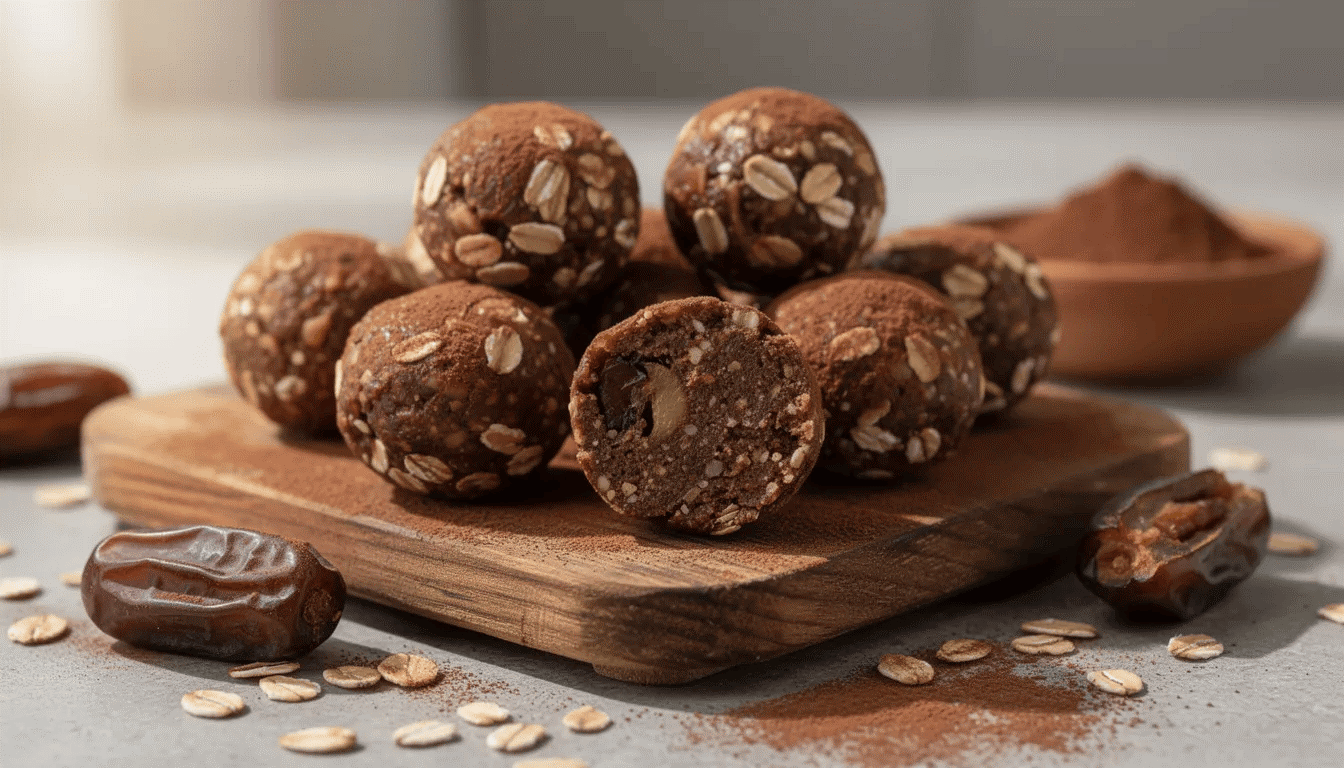 - Energy balls dattes, flocons d’avoine, noix de cajou et cacao — Mixez tous les ingrédients, formez des boules, conservez au frais. Des snacks prêts à emporter qui remplacent avantageusement les barres industrielles.